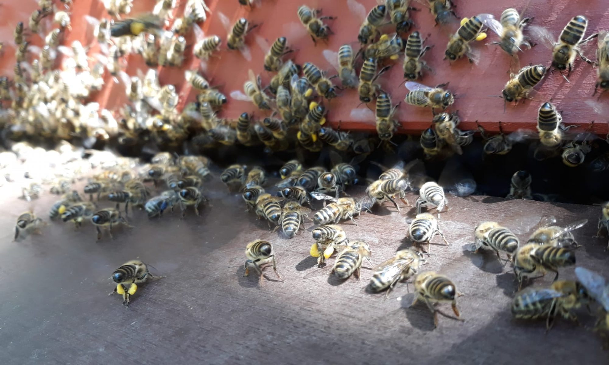 Die Imkerei besteht je nach Jahreszeit aus ca. 350.000 geflügelten Sechsbeinern und einem Zweibeiner, der nicht fliegen kann, sich dafür aber sorgfältig um seine Bienen kümmert.